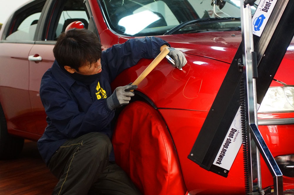 お車好きの多くの方にペイントレス・デントリペアの魅力を実感していただきたい、お客様の素晴らしいカーライフに貢献したいという想いで、日々作業しております。