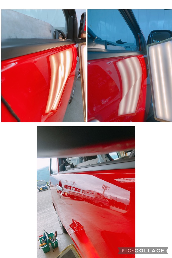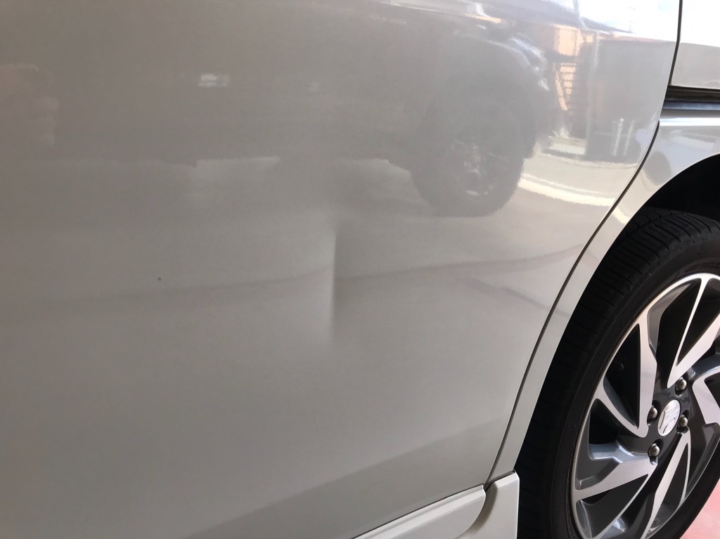 軽自動車のパネルでここまで凹むと正直難しいところ…傷は残りますがなんとかご依頼主様の満足頂ける仕上がりができました!