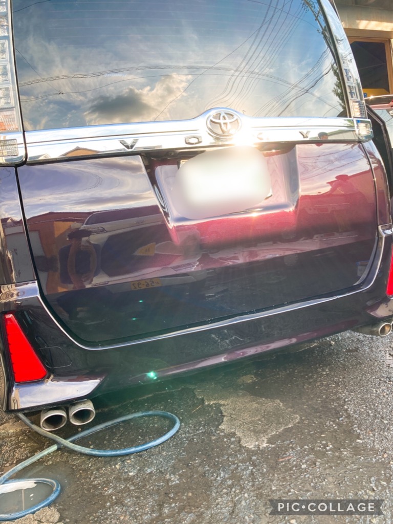 トヨタ ヴォクシーのリアゲートの修理です!バックでぶつけてしまったようです。板金塗装せずにデントリペアで綺麗に直りました!お客様にも金額も仕上がりも喜んで頂けました!