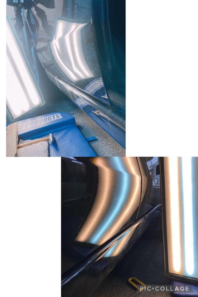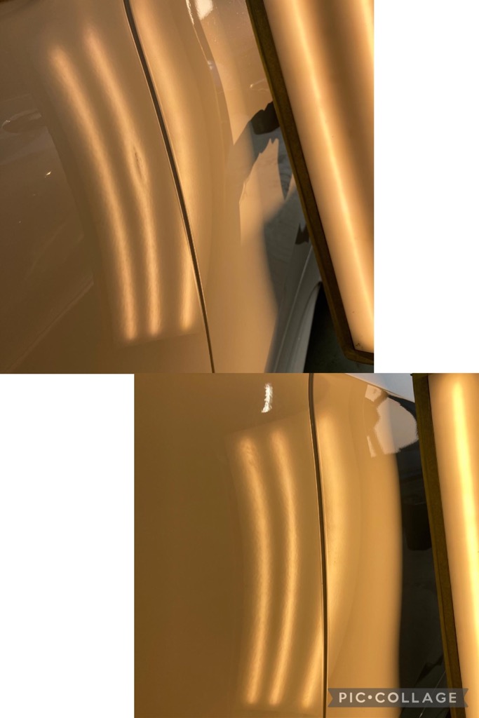 今回はミニのリアフェンダーをデントリペア(板金塗装しない)で修理しました♪この場所はドアと違い簡単にアクセスするのは難しいところです。塗装の状態・凹みの状態を確認して今回は外から引っ張り上げて施工しました。短時間で綺麗に直りスッキリしましたね♪
